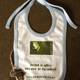 Zelfs een slabbetje kan bedrukt worden! Zoals het slabbetje van SV Services op de foto laat zien is het erg leuk en grappig om een slabbetje te laten bedrukken. Het slabbetje kan met koordjes worden voorzien maar natuurlijk ook gewoon met velcro. Daarbij is de rand in diverse kleuren verkrijgbaar. Wij bedrukken de slabbetjes in full color met zowel een afbeelding als tekst. Dus nu kan uw bedrijf zelfs gepromoot worden door de allerkleinsten!