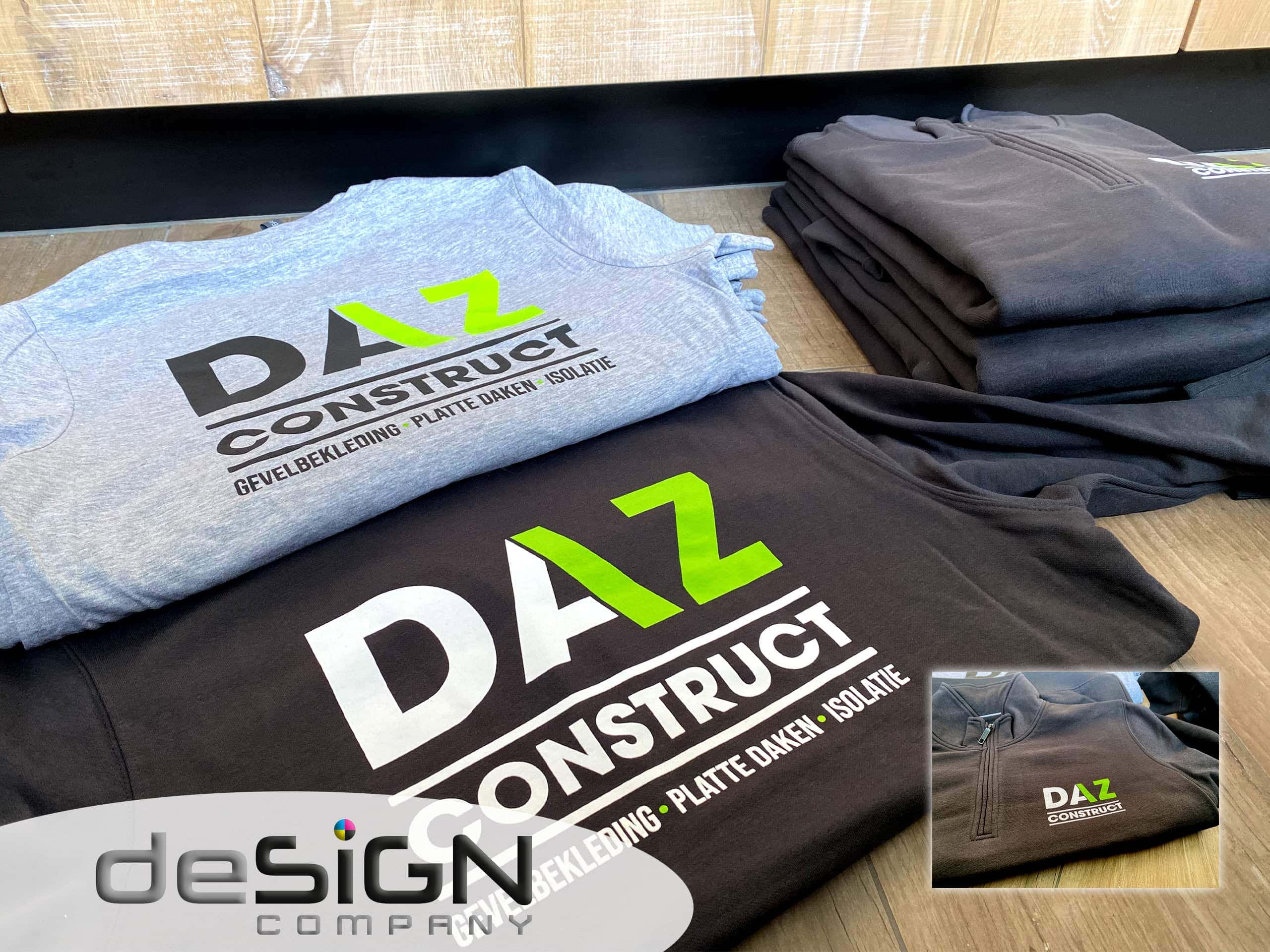 Het resultaat is een uniforme, professionele uitstraling waarmee het team van DAZ Construct op elke werf meteen opvalt. De bedrukking is duidelijk zichtbaar, voelt zacht aan en blijft ook na vele wasbeurten mooi behouden.
